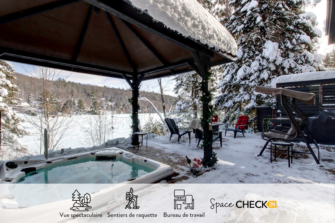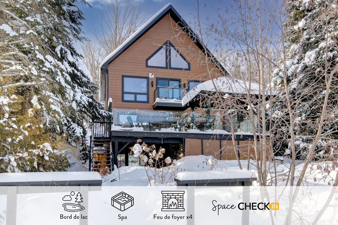 ♦ Chalet au bord de l'eau avec spa dans un décor exceptionnel proposant 4 foyers intérieurs et extérieurs. Les grandes fenêtres et porte-patio côté Lac ont été pensées pour maximiser le spectacle. Ce magnifique chalet peut accueillir jusquʼà 6 personnes dans le plus grand confort.