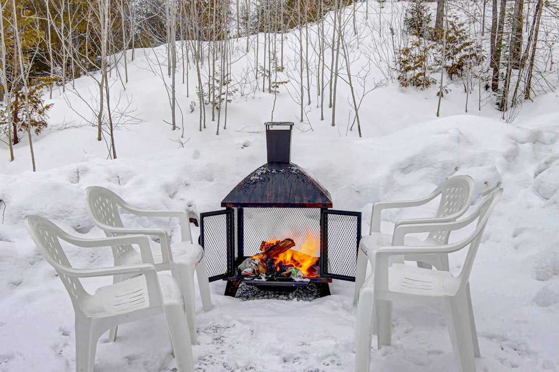 CHEMINÉE / BÛCHES* Il y a une cheminée intérieure et une cheminée extérieure à votre disposition. Je fournis environ 20 bûches, donc si vous voulez faire plusieurs feux, vous devriez apporter du bois. Vous pouvez en acheter près du chalet, je vous enverrai l'adresse avant votre arrivée. Le foyer n'est pas accessible de novembre à avril. *JACUZZI* Le jacuzzi est à votre disposition toute l'année. Vous avez juste besoin d'apporter vos propres serviettes pour le jacuzzi. Les partys sont interdits. Des dispositifs de détection de bruit excessif sont installés à l'intérieur et l'extérieur du chalet. Nous tenons à garder une bonne entente avec nos voisins et la communauté du Domaine du Cerf