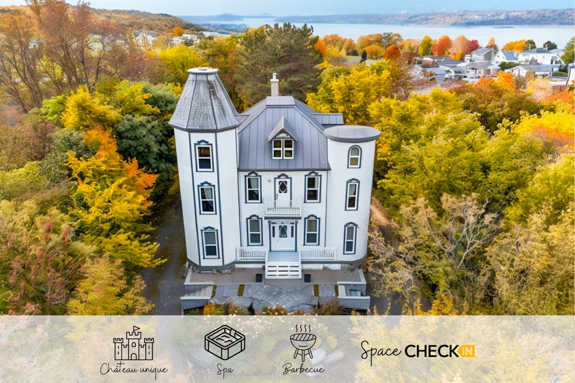 *CHÂTEAU* Veuillez noter que le château se compose de 3 unités : 2 appartements au rez-de-chaussée et de l'unité de cette annonce qui occupe le 2ème et 3ème étage. La terrasse et le spa seront entièrement réservés pour vous, tandis que les autres espaces extérieurs, y compris le foyer, sont à partager. *CAPACITÉ* Veuillez noter que la capacité maximum est de 10 adultes et 2 enfants. *BBQ et MEUBLES EXTÉRIEUR* Le barbecue et les meubles d'extérieur ne sont pas accessibles de mi-octobre à avril. *PNEU D'HIVER* En hiver, tous les modèles de voitures peuvent facilement accéder à la propriété à condition d'être équipés de pneus d'hiver. N'oubliez pas que partout au Québec, il est obligatoire d'avoir des pneus d'hiver sur votre véhicule du 1er décembre au 15 mars inclusivement. Assurez-vous d'être en conformité pour un trajet en toute sécurité !