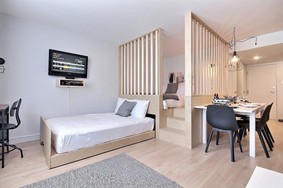 ✦ L'unité comprends un lit queen sur la plate-forme, ainsi qu'un lit double rétractable.