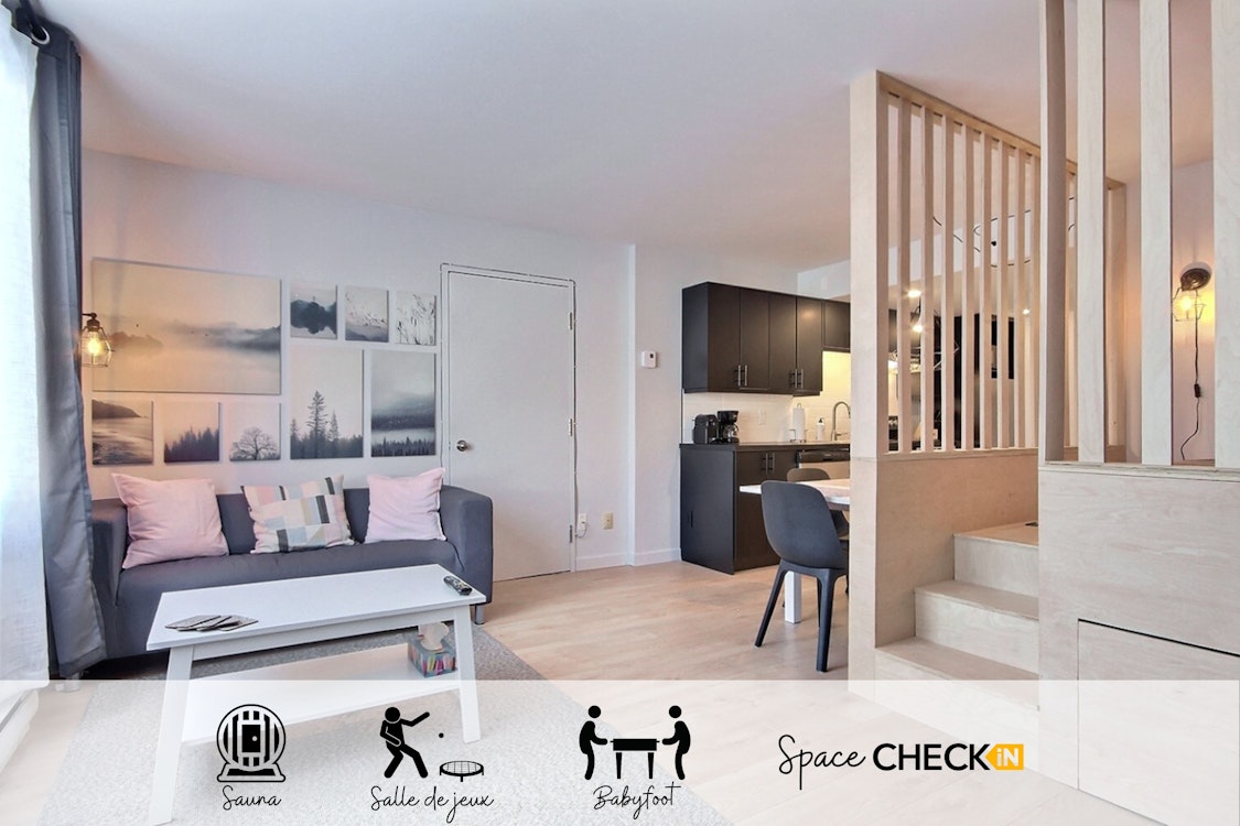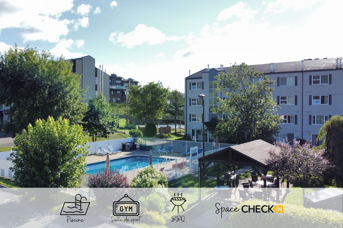 ✦ Dans les aires communes du complexe, vous aurez accès au gym intérieur, au sauna, à la salle de jeux (babyfoot, télévision et foyer), ainsi qu'à la buanderie payante.