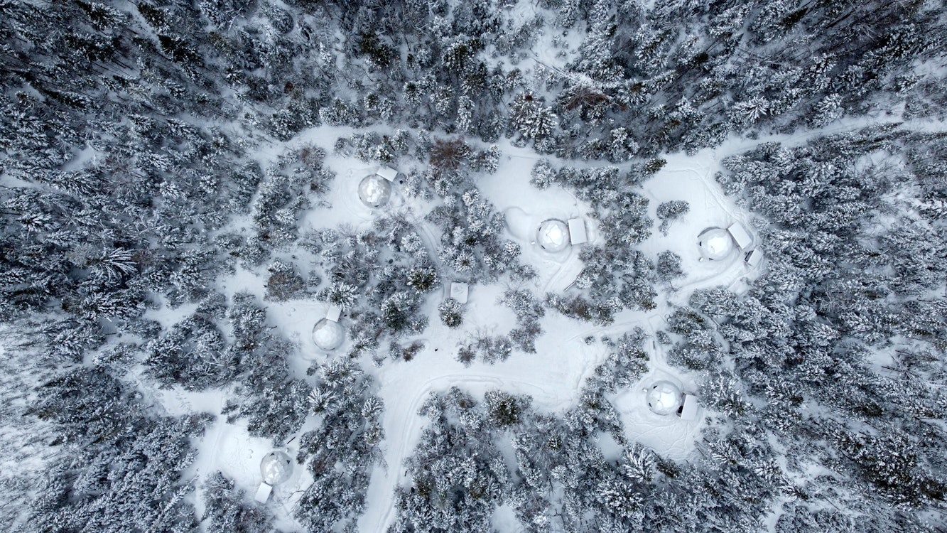 ✦ Les Dômes sont munis de planchers chauffants, d'un foyer à gaz électrique, ainsi qu'une thermopompe qui diffuse de la chaleur et de l'air climatisé en été.