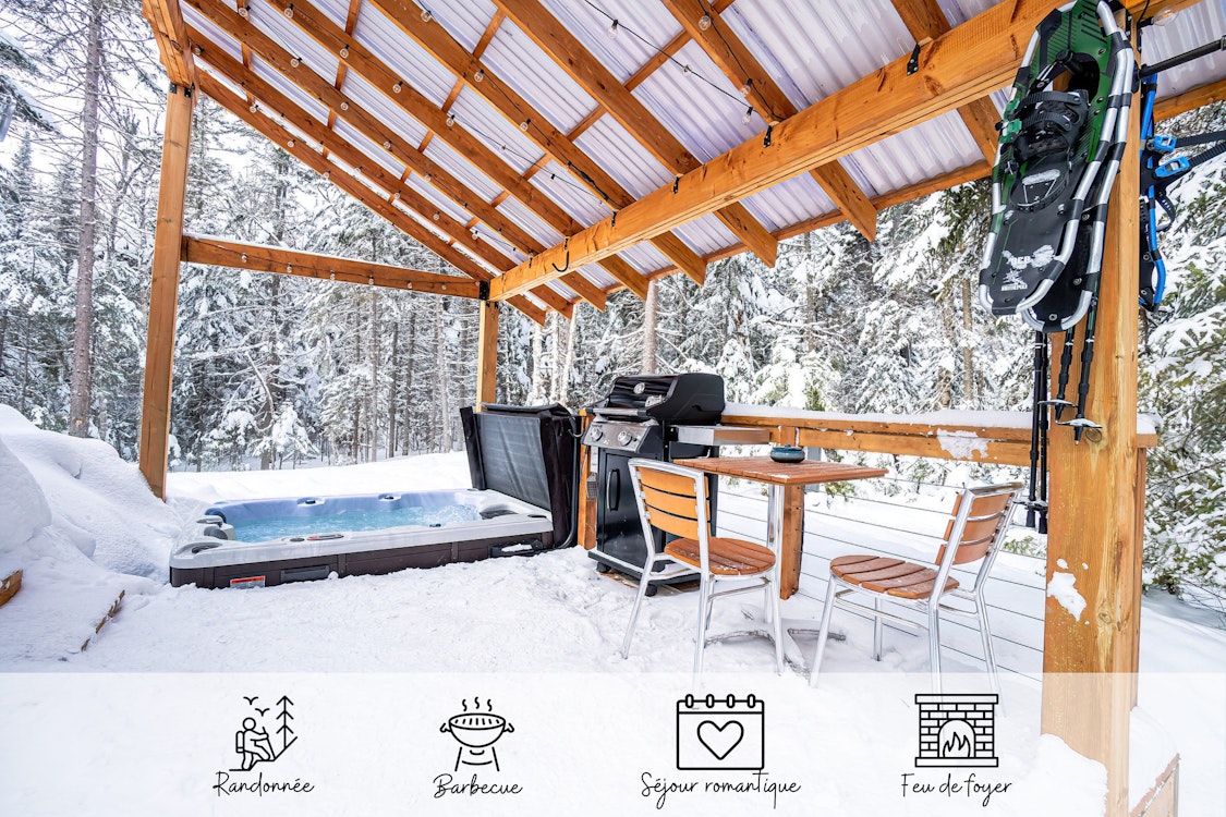 Détendez-vous dans votre spa privé 4 saisons et relaxez au chant des oiseaux, pour un séjour qui ne manque pas d'authenticité dans la magnifique région du Lac-Supérieur!