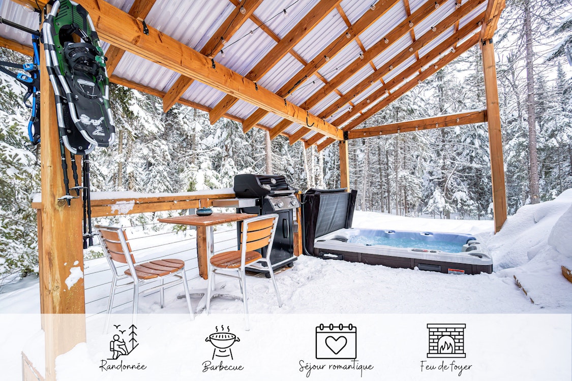 Détendez-vous dans votre spa privé 4 saisons et relaxez au chant des oiseaux, pour un séjour qui ne manque pas d'authenticité dans la magnifique région du Lac-Supérieur!