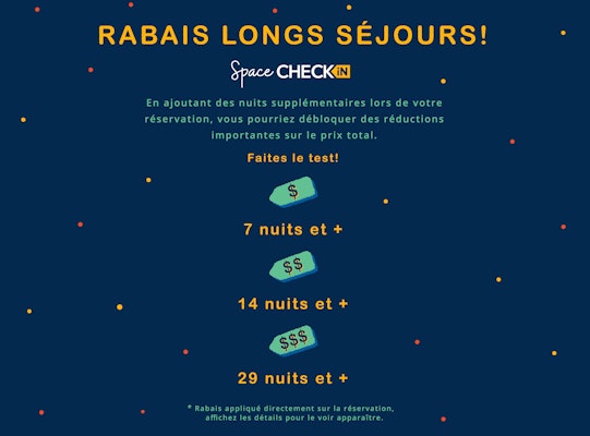 Pour les séjours plus longs (jusqu’à 90 jours) ou les locations mensuelles, les annulations et modifications sans frais sont possibles avec au moins 30 jours d’avance.