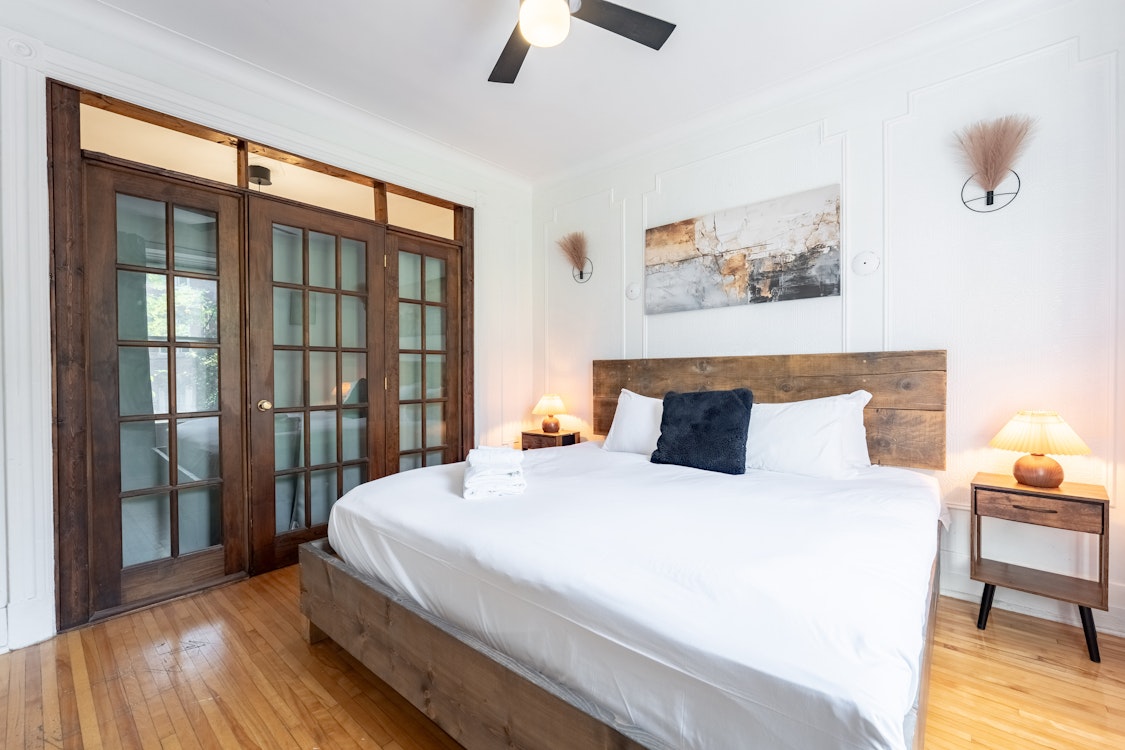 ✔ Chambre 2 : Lit Queen (séparée de la chambre 1 par une porte française avec un rideau d'intimité ; veuillez noter qu'un peu de lumière peut circuler entre les pièces en haut de la séparation)