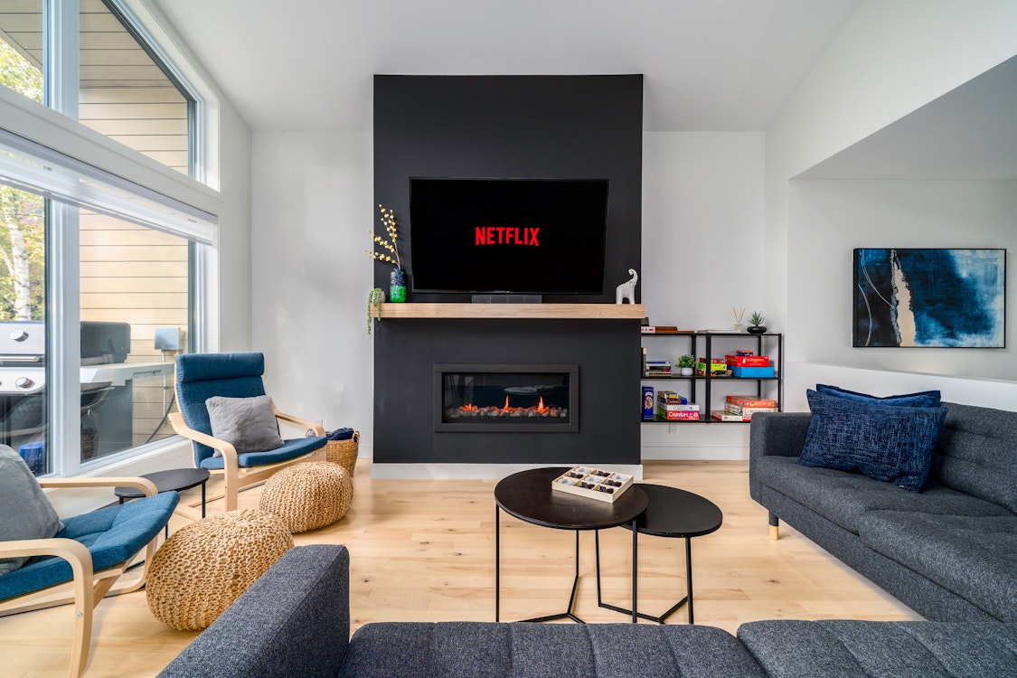 Le salon spacieux est l'endroit parfait pour se détendre. Il est équipé d'une TV pour vos soirées cinéma, ainsi qu'un babyfoot pour des moments de convivialité. Le foyer intérieur ajoute une touche chaleureuse et accueillante, créant une ambiance idéale pour des soirées cocooning.