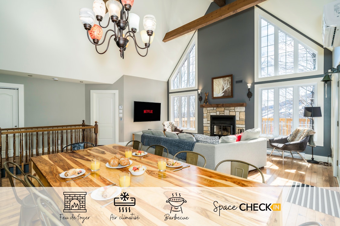 *CAPACITÉ* Veuillez noter que la capacité maximum est de 10 adultes et 3 enfants. *TV* Nous avons deux télévisions intelligentes dans l'unité mais n'offrons pas de chaîne par câble. Vous aurez accès à des applications comme Netflix, Prime, Disney + sur lesquelles vous pourrez connecter votre compte. *BARBECUE* Le barbecue n'est pas accessible de novembre à avril. En hiver, si vous comptez utiliser le barbecue, il est de votre responsabilité de le préparer et de déneiger la zone d'accès. *BRUITS* Parce que nos voisins sont sensibles au bruit et souhaitent profiter d'un environnement calme en pleine nature, il est strictement interdit de faire la fête au chalet. Nous vous demandons d'être sensible au volume de la musique ou si vous chantez autour du feu de camp. *FOYER / BÛCHES* Un foyer extérieur est à votre disposition. Vous devez toutefois apporter votre propre bois. Je vous suggère d'apporter du petit bois et du papier pour aider à allumer le feu. Aussi, comme les briquets disparaissent facilement, je vous conseille d'en apporter un. Vous pouvez acheter du bois et des accessoires à proximité du chalet, les adresses seront dans votre manuel de l'invité. Le foyer extérieur n'est pas déneigé de novembre à avril, donc si vous désirez utiliser le foyer extérieur en hiver, il est de votre responsabilité de dégager l'accès. *SPA* Le spa est à votre disposition toute l'année. Cependant, vous devez apporter vos propres serviettes pour le spa. *RÈGLES DES CHALETS* Veuillez prendre le temps de lire le règlement du chalet dans la section « Règlement intérieur » au bas de mon annonce et confirmer que vous êtes d'accord avec celui-ci.