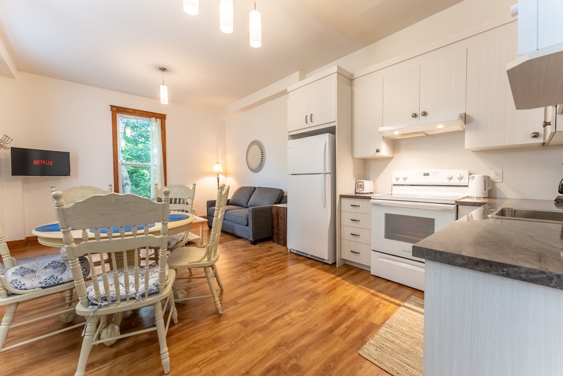 **Accès des voyageurs :** ✦ Vous aurez accès à l’entièreté de l'unité ainsi que les deux balcons d'où vous pourrez savourer vos repas grâce aux tables et chaises mises à disposition. ✦ En réservant avec nous, vous recevrez un Manuel de l'invité vous indiquant toutes les informations importantes à savoir sur l'unité, en plus des adresses d'activités et de magasins pertinents à proximité! **Étages et escaliers :** Comptez 5 marches extérieures pour accéder au logement.