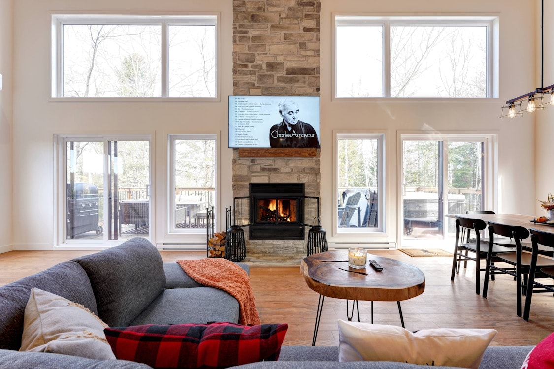 *EAU* L'eau est sulfureuse et dégage une odeur, mais elle est belle et bien potable. Je fournirai quelques bouteilles d'eau, et je suggère que vous en ameniez plus si vous pensez que les invités peuvent être sensibles à l'odeur de l'eau potable au chalet. *WIFI* Il y a du wifi au chalet, mais celui-ci n'est pas toujours constant. Bien que la vitesse soit de 50 mbps, il se peut que vous éprouviez des problèmes à faire des vidéoconférences. Il ne devrait pas y avoir de problème pour une utilisation normale cependant. *TV* Nous avons une télévision intelligente dans l'unité mais n'offrons pas de chaîne par câble. Vous aurez accès à des applications comme Netflix, Prime, Disney + sur la télévision où vous pourrez connecter votre compte, et Radio Canada est également disponible sur la télévision. *FOYER / BÛCHES* Il y a un foyer intérieur et un foyer extérieur à votre disposition. Je fournirai quelques bûches pour faire un feu, si vous en désirez plus vous pourrez en acheter à proximité du chalet, les adresses seront fournies dans le manuel de l'invité. En hiver: Il est de votre responsabilité de déneiger l'accès au foyer d'extérieur *COCCINELLES* Les changements de saison au printemps et à l'automne apportent également l'arrivée de petits visiteurs colorés en quête de chaleur : les coccinelles. Il est donc possible que vous en rencontriez lors de votre séjour durant ces périodes. Rassurez-vous, elles sont totalement inoffensives pour votre santé.